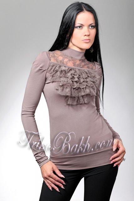 736 736 135 1 шт Состав: 95% вискоза, 5% лайкра Гольф трикотажный с гипюровым “жабо” Длина изделия около 64-65см, длина рукава с манжетой около 70см Размеры: 44; 46